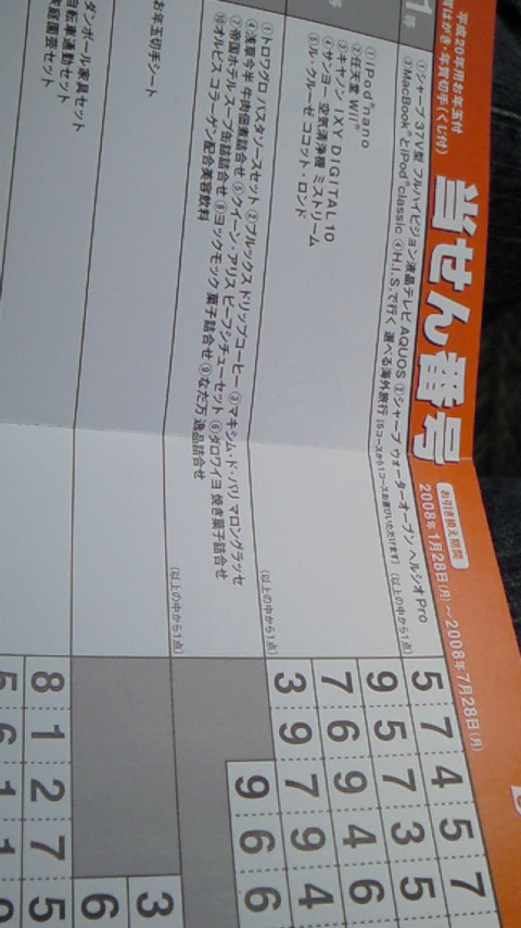 「ついで・・・。」と思って、年賀状の当せん番号調べてなかったから頂いた。