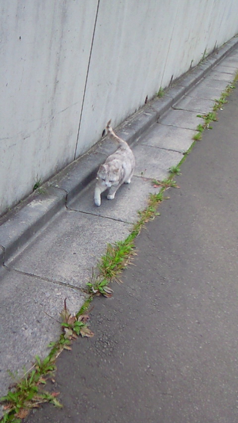 さっき黄色い首輪を着けた白い猫に会って
