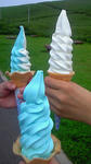 青いソフトクリーム